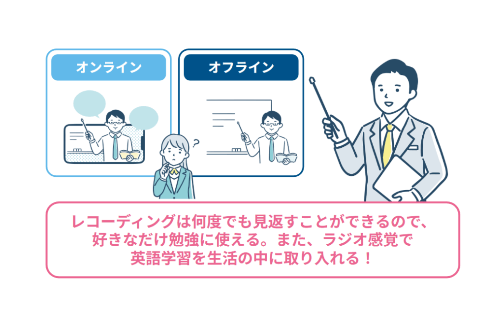 オンラインとオフラインの違いであり、大きなメリットのひとつはレコーディングにあります。ライブ授業を受けて、リアルな経験を子どもたちは積みますが、その時間だけでは新しい知識や言葉の習得はなかなか難しい側面があります。課題と並行してレコーディングを見返すことで知識の定着、思考力を鍛えます。レコーディングは何度でも見返すことができるので、好きなだけ勉強に使えること、また、高額の英語教材を買うよりずっと安くラジオ感覚で英語学習を生活の中に取り入れることも考えられます。