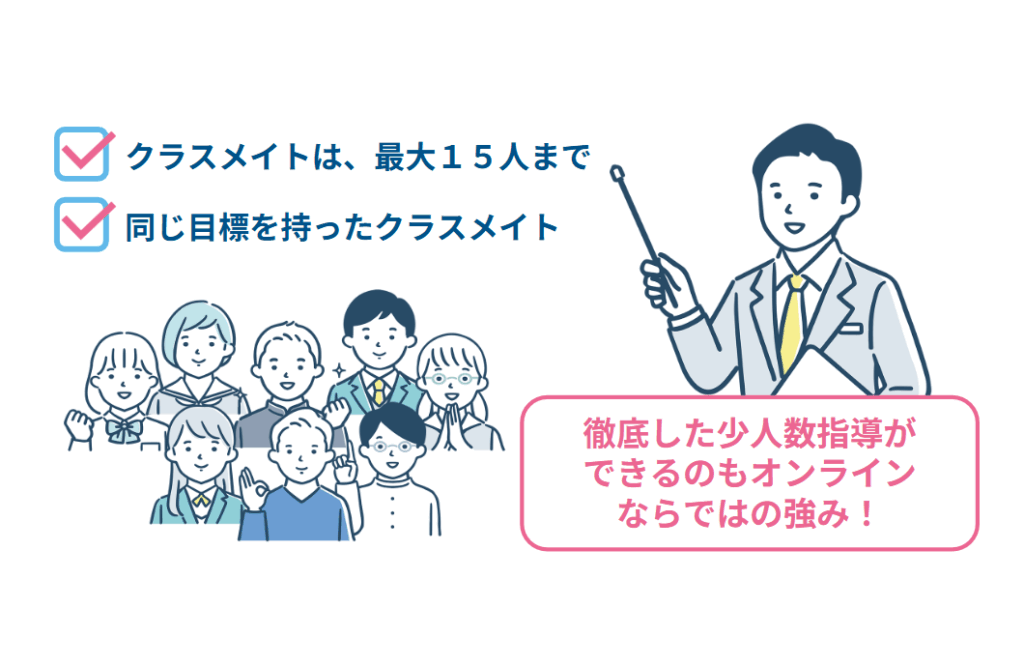 クラスメイトは、最大15人までと徹底した少人数指導ができるのもオンラインならではの強みです。1対1では緊張感が増してしまう英語学習も、同じ目標を持ったクラスメイトと一緒なら楽しみながら、学習に取り組むことができます。